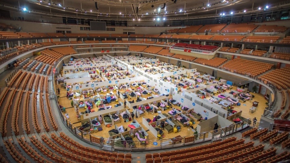 The interior view of the temporary hospital converted from Wuhan Sports Center in Wuhan. Photo Xinhua