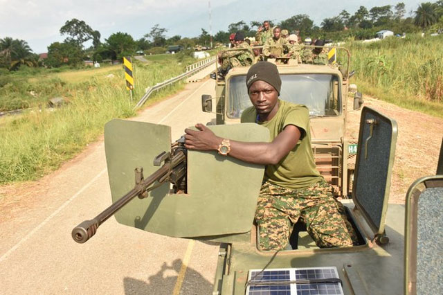 A UPDF officer on an armored vehicle in DRC. UPDF Photo