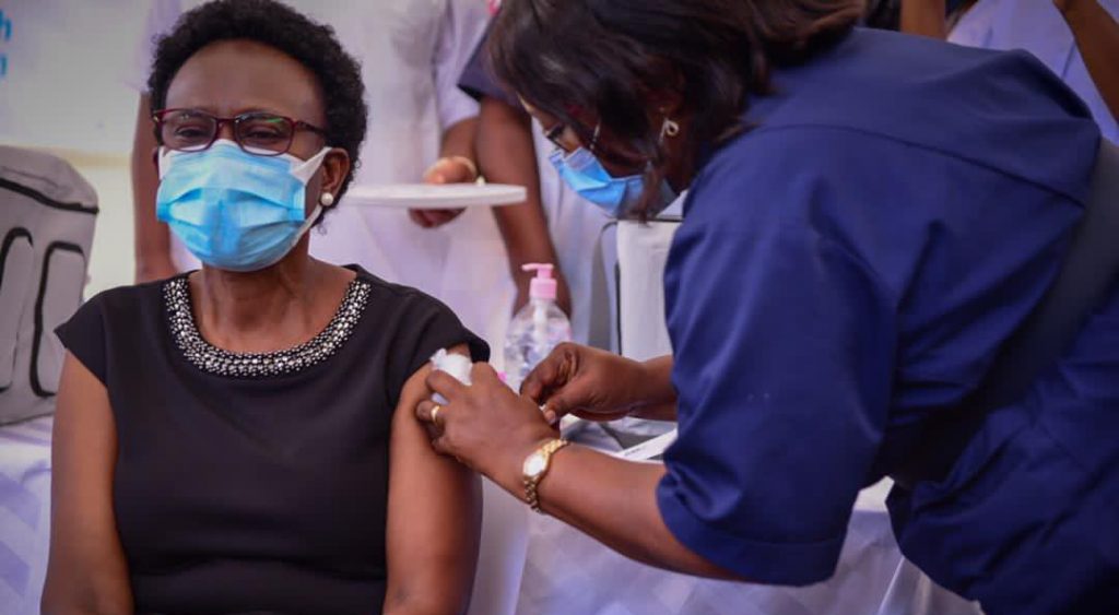 The Minister of Health, Dr Jane Ruth Aceng Ocero was the first Ugandan to take COVID-19 Vaccine jab in broad day light and she is currently in good health, the health spokesperson Emmanuel Ainebyonna said in a statement on Thursday.